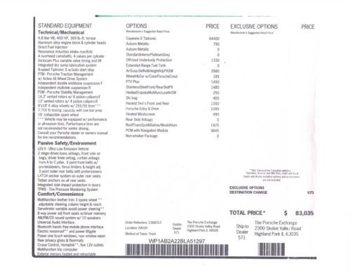 UP FOR SALE.....ONE OWNER 2011 PORSCHE CAYENNE, AUBURN METALLIC OVER GREY LEATHER. INCLUDES SKI RACK MOUNTED TO THE TOP AND EXTRA SET OF TIRES 1000 MILES ON THEM. THIS CAR STICKERED FOR $83,000 AND IS IN MINT CONDITION. THE MILEAGE.......5,300 THATS RIGHT ........5,300 MILES. A MUST SEE TO BELIEVE. THE VEHICLE IS IN ASPEN COLORADO AND CAN BE VIEWED BY APPOINTMENT ONLY. ANY QUESTIONS OR TO SET AN APPOINTMENT PLEASE CALL ME AT 773.655.0768 UNDER PORSCHE FACTORY WARRANTY UNTIL 2-28-15 **ALL SERIOUS CASH OFFERS CONSIDERED |