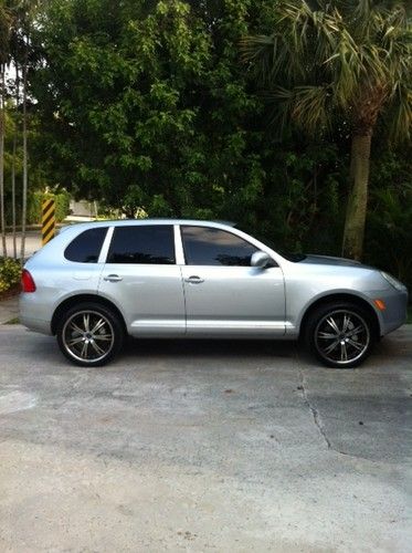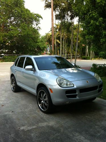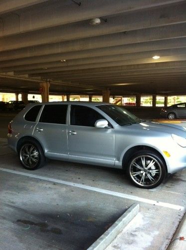 2006 Silver Porsche Cayenne S. Black leather interior. 22" wheels. Sale price includes additional Porsche factory wheel and tire set. Drives incredible!