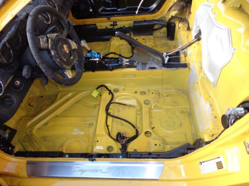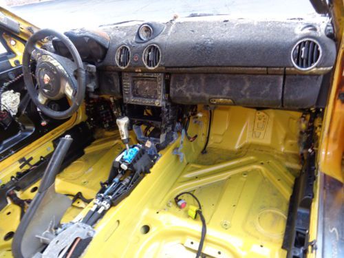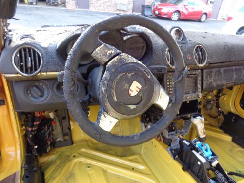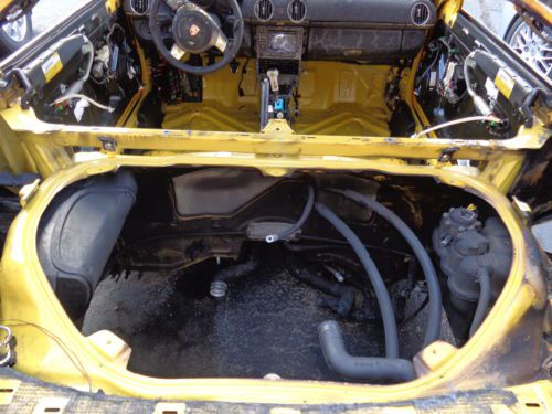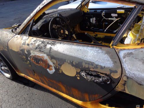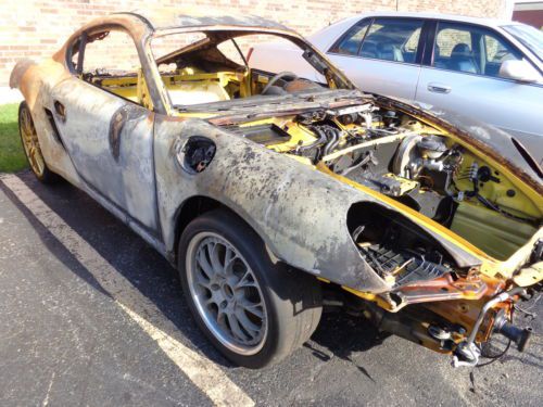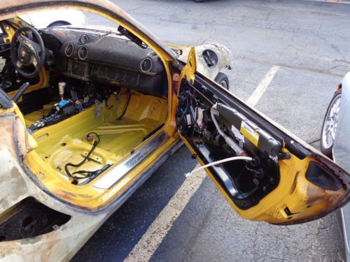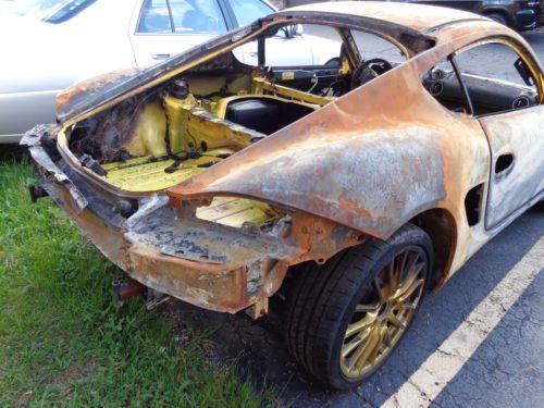 Hello, this auction is for 2006 Porsche Cayman S bare chassis. Vehicle has been burnt, and title is junk, sold by a dealer. This is a perfect race car project or for parts only. Frame is absolutely straight, car has never been in an accident, everything is original. Suspension with PSM is all good, only right rear is burnt and will need to be replaced. Wheels are not included with the chassis. We will leave them on for the pick up, once car is loaded we will remove them. Vehicle had about 37k miles on odometer.