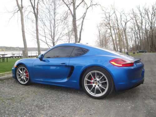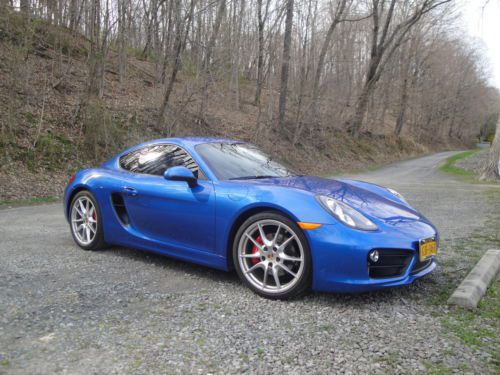 I am selling my beautiful 2014 Porsche Cayman S with 7,xxx miles in perfect showroom condition. This is the only manual transmission in this color (sapphire blue) in the USA. I special ordered it from Stuttgart, and this is a brand new color for 2014. I have all paperwork, and original window sticker (MSRP was $74,135). This head turning car has 20" Carrera S wheels with plenty of tread left on the tires, wheel center caps with colored Porsche crest, Porsche Active Suspension Management (PASM), sport design steering wheel, convenience package, heated seats, infotainment package with Bose stereo, navigation gps, Porsche car cover, 4 year / 50k mile warranty, and tints for privacy (which can be removed). This 3.4 liter, 6 cylinder motor has 325 stock horse power. Never raced, never tracked, broken in properly, maturely driven, and always garaged. This car is a real head turner, chick magnet, conversation starter. Everywhere I go, people compliment the car and take pictures. I have plenty more pictures I can send you. Call, text, or email me with questions or requests. My number is 845 - 489 - 2834. Thanks for viewing.