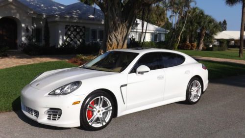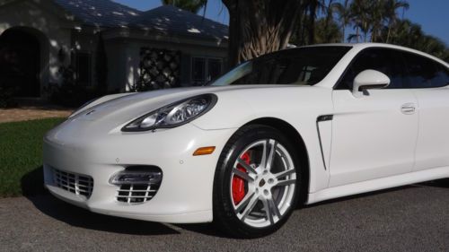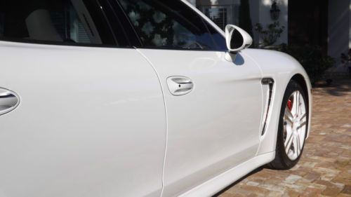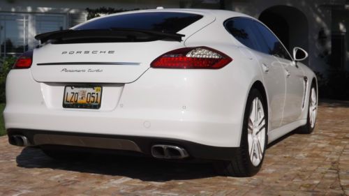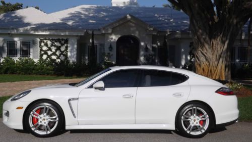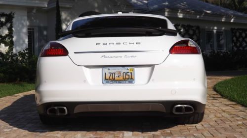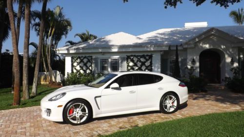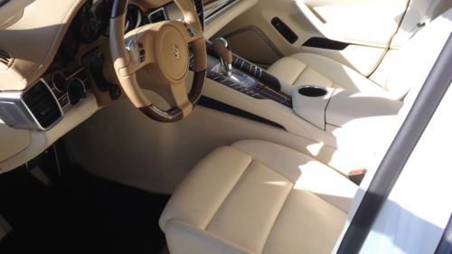 Finished in Carrera White over two-tone Luxor Beige with Creme Secondary leather. This beautiful Panamera Turbo has only 11,525 pampered miles. This Panamera Turbo is still just like new, it could have been driven off the show room floor yesterday. This motor car has just received a recent service with new tires installed and is still under factory warranty. Porsche's first venture into a sedan has redefined the entire segment. Maserati Quattroportes, BMW M5s, Mercedes-Benz S63s, and even Aston Martin's Rapide cannot compete with the performance and athleticism of the Panamera Turbo. Motivated by a turbocharged V8 engine, transmitting its power through a sophisticated dual-clutch 7-speed automatic and AWD, it is a true 4-door, 4-seat sports car. The design language of the exterior and interior is very modern and unmistakably Porsche. This Panamera Turbo is LOADED with highly desirable options, such as Burmmester High-End surround sound system, Sport exhaust system, 20 inch 911 Turbo II wheels, wheel caps with colored crests, blue tooth phone interface, park assist F/R including rear camera, sport chrono plus package, variable assist power steering, XM satellite radio, floor mats and universal audio interface. If that was not enough, there is even exclusive options such as, Porsche Crest - front and rear headrests, Mahogany Yachting interior package, and heated steering wheels Mahogany Yachting, which leaves nothing much left to be desired. The original price tag was $151,915 MSRP, which you wont see any higher than this. The current Palm Beach owner is downsizing his collection and has reluctantly decided to let her go. If you are looking for the performance of a Porsche, in a crisp and trendsetting 4-door your search ends here. |