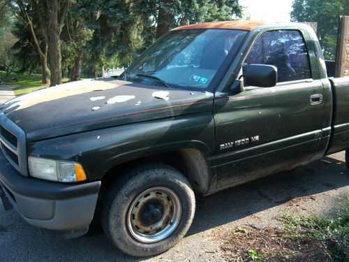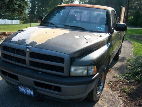 This is a 1996 Ram 1200.This has been my mulch truck for the past two years. My township code enforcement officer calls me on a regular basis to complain about this truck every chance possible. I don't use the truck for several months in the winter and have no place to park it except for off the road on my property, but that doesn't seem to be acceptable in this community. The trucks drives daily and is inspected through 6/14. The body is rusted, the paint is peeling off all over. It doesn't use much oil but it has a transmission leak and I use about a quart every couple hundred miles.. There is a bed liner that is in good conditon. It is a full size pickup truck that can still do some work with a little mechanical love. I am selling this without the woods sides. I have taken them off after the photos were shot.
