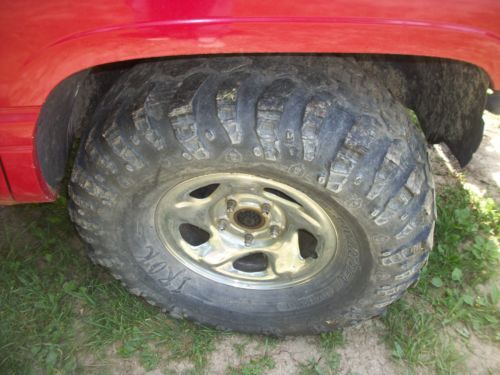 this truck is set up for mud running the headlights are gone and the fuel tank was placed in the bed,it does run and the 4/4 works.there is some rust.there is one tire that was blown out as the picture shows but i do have 4 = 285-75 r16 tires for it. it has a heavy duty front bumper and the back bumper is no good.im thinking its a 360 engine and the miles are not actual on it.any more questions shoot me a email.