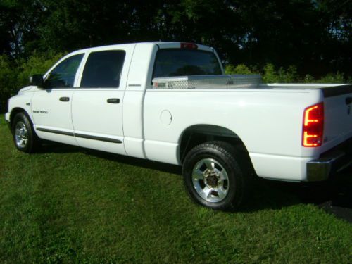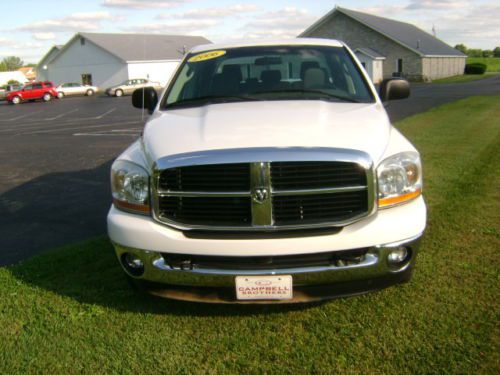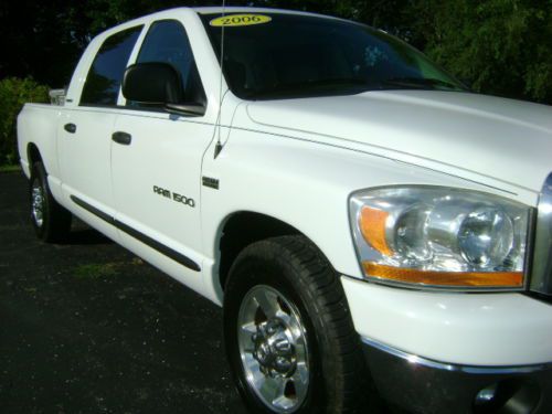 2006 DODGE RAM 1500 SLT MEGA CAB SHORT BED 2WD 5.7L HEMI V8 AUTOMATIC TRANSMISSION 8,510 LBS. GVWR ONE OWNER ONLY 56,420 MILES VERY WELL CARED FOR TRUCK VERY HARD TO FIND! IF YOU HAVE ANY QUESTIONS PLEASE CALL OUR SALES MANAGER BRIAN AT 765-561-0599 We at CAMPBELL BROTHERS AUTO SALES INC. are offering for sale this ONE OWNER, VERY CLEAN, 2006 RAM 1500 MEGA CAB, SHORT BED, SLT, with a 5.7L HEMI V8 and AUTOMATIC TRANSMISSION with ONLY 56,420 ACTUAL MILES. This truck truly speaks for itself. We purchased this truck from a local gentleman's retirement auction. He purchased this truck new in Arizona which is where he and his wife's retirement home was located and kept it there most of the time. Therefore this vehicle has not seen harsh or winter weather. Due to health reasons the previous owner decided to no longer travel to their winter home consequently downsizing on vehicles and other no longer needed items. This truck has been well cared for and maintained. It is exceptionally clean on the inside and out. There are no dents, dings, or scratches and carries a clean Carfax History Report. The interior is a non-smoker and shows very little if any wear. The only area this truck shows any wear at all is the bed which has only normal scratches. Overall this is a hard to find truck that one can truly be proud of. The Ram 1500 Mega Cab is a highly desirable vehicle. To find one can be quite difficult, to find one in this condition with only 56,420 actual miles is next to impossible. Bid now and make yourself the owner of this fine truck. This 2006 RAM 1500 MEGA CAB come nicely equip with many options and features which include....