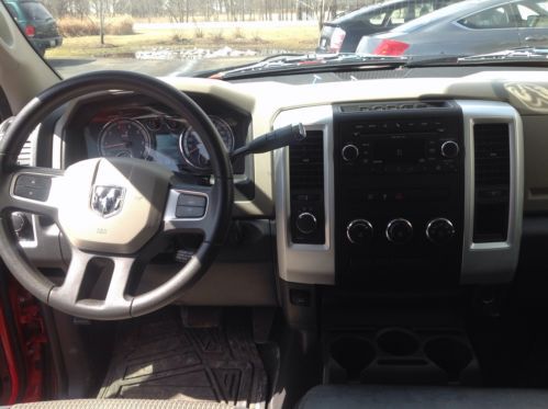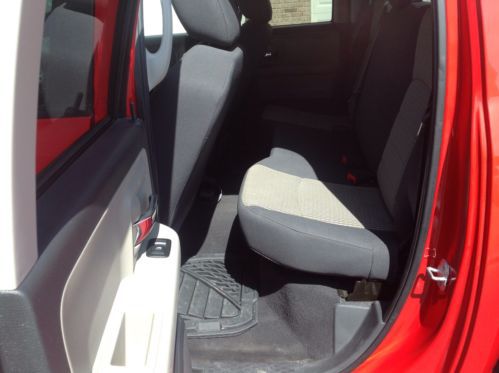 The 2011 Dodge Ram 1500 Quad Cab or Crew Cab with a 6.4-ft bed and bed liner. The Quad and the Crew has four conventional doors and can seat up to six people.The engine is an E85-capable 4.7L V8 with 310 horsepower and 330 pound-feet of torque with a 5-speed automatic transmission. Shift-on-the-fly 4-wheel drive and a maximum towing capacity of 8,700 lb. Standard safety equipment on all 2011 Ram 1500s includes 4-wheel anti-lock disc brakes, stability control, hill-start assist, trailer sway control, front-seat side airbags, full-length side curtain airbags, integrated trailer brake controller, trailer-tow mirrors and a tire-pressure monitor system. In government crash tests, the Ram 1500 was awarded the highest score of five out of five stars for frontal and side-impact protection for all passengers. The Insurance Institute for Highway Safety also gave the Ram 1500 its highest score of "Good" for frontal-offset crash protection.Standard and optional equipment will vary depending on the combination of features. The base ST trim offers a split bench seat, tilt steering wheel, air conditioning, CD/MP3 stereo and auto-on headlights. ST Quad Cabs add folding rear seats and power accessories. The SLT adds 17-inch alloy wheels, chrome exterior trim, heated outside mirrors, carpet floor covering, power accessories, trip computer and satellite radio.