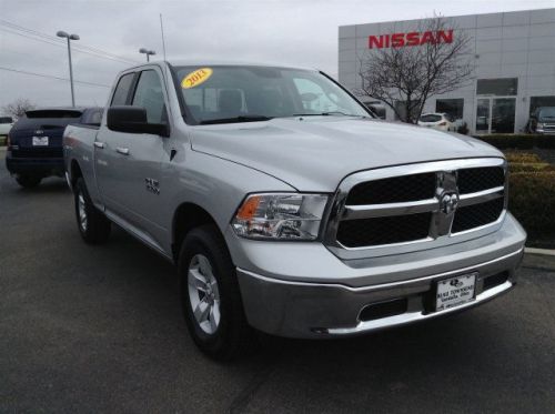 Ram 1500 SLT Quad Cab, 4D Quad Cab, 4.7L V8 FFV, 6-Speed Automatic, 4WD, Bright Silver Metallic, Steel Gray, Alloy wheels, Bed Liner, Clean Vehicle History Report, Remote keyless entry, Sliding Rear Window, Tilt steering wheel, Traction control, and USB Port. How reassuring is the proven work ethic of this wonderful-looking 2013 Dodge Ram 1500? This truck is nicely equipped with features such as Ram 1500 SLT Quad Cab, 4D Quad Cab, 4.7L V8 FFV, 6-Speed Automatic, 4WD, Bright Silver Metallic, Steel Gray, Alloy wheels, Bed Liner, Clean Vehicle History Report, Remote keyless entry, Sliding Rear Window, Tilt steering wheel, Traction control, USB Port, 40/20/40 Split Bench Seat, 4-Wheel Disc Brakes, 6 Speakers, ABS brakes, Air Conditioning, AM/FM radio, Black Exterior Mirrors, Brake assist, Bumpers: chrome, Cloth 40/20/40 Bench Seat, Delay-off headlights, Driver door bin, Dual front impact airbags, Dual front side impact airbags, Electronic Stability Control, Exterior Mirrors w/Heating Element, Front anti-roll bar, Front Center Armrest w/Storage, Front reading lights, Front wheel independent suspension, Fully automatic headlights, Heated door mirrors, Illuminated entry, Low tire pressure warning, Occupant sensing airbag, Outside temperature display, Overhead airbag, Overhead console, Panic alarm, Passenger door bin, Passenger vanity mirror, Power door mirrors, Power steering, Power windows, Radio data system, Rear anti-roll bar, Rear step bumper, Speed control, Tachometer, Tip Start, Trip computer, Variably intermittent wipers, and Voltmeter. The uncompromising toughness of this stout Ram 1500 will make it a favorite among our more educated buyers. FREE MAINTENANCE! Get scheduled maintenance for 2 years or 24,000 miles on Certified Pre-Owned Nissans. Exclusive online offer. Contact us through Cars.com about this vehicle to confirm availability and receive your maintenance certificate. Certificate must be presented at time of purchase for BTnissan Loyalty Plus Maintenance Program enrollment.