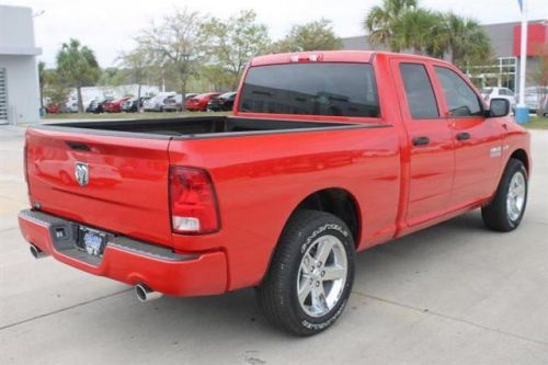 Express trim. iPod/MP3 Input, Alloy Wheels, Tow Hitch, Heated Mirrors, Overhead Airbag. Warranty 5 yrs/100k Miles - Drivetrain Warranty; CLICK NOW! KEY FEATURES INCLUDE Heated Mirrors, iPod/MP3 Input, Trailer Hitch, Aluminum Wheels MP3 Player, Privacy Glass, Child Safety Locks, Electronic Stability Control, Brake Assist. WHY BUY FROM US Rick Hendrick Jeep Chrysler Dodge is the premier dealership for New and Used Jeep, Chrysler & Dodge vehicles in Charleston, South Carolina and specializing in Jeep, Chrysler & Dodge Sales, Finance, Service, and Parts. At Rick Hendrick Jeep Chrysler Dodge, our customers are being provided with high quality service and excellent after sales support. Closing Fee is included in the advertised/sales price. Please confirm the accuracy of the included equipment by calling us prior to purchase. - This 2014 RAM 1500 2WD Quad Cab 140.5 Express Truck features a 5.7L 8 CYLINDER 8cyl Gasoline engine. It is equipped with a 8 Speed Automatic transmission. The vehicle is Flame Red Clearcoat with a Other interior. It is offered with a full factory warranty. - Air Conditioning, Cruise Control, Tinted Windows, Power Steering, Power Windows, Power Door Locks, Passenger Airbag, Security System, ABS Brakes, Dynamic Stability, Intermittent Wipers, AM/FM,, Heated Mirrors - Be sure to utilize our great team of Internet Sales Managers whether you are browsing online or decide to come see our Charleston car dealership for yourself!