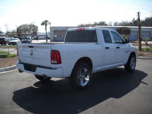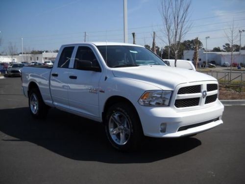 Express trim, Bright White Clear Coat exterior. Overhead Airbag, Alloy Wheels, iPod/MP3 Input, Heated Mirrors, ANTI-SPIN DIFFERENTIAL REAR AXLE, QUICK ORDER PACKAGE 26C EXPRESS, TRANSMISSION: 8-SPEED AUTOMATIC (8HP7... SEE MORE!KEY FEATURES INCLUDEHeated Mirrors, iPod/MP3 Input, Trailer Hitch, Aluminum Wheels MP3 Player, Privacy Glass, Child Safety Locks, Electronic Stability Control, Brake Assist. OPTION PACKAGESPARKVIEW REAR BACK-UP CAMERA Rear View Auto Dim Mirror with Display, POPULAR EQUIPMENT GROUP Cloth 40/20/40 Bench Seat, Remote Keyless Entry with All-Secure, SIRIUSXM Satellite Radio, For More Info, Call 877-800-2018, 1-Year SIRIUSXM Radio Service, ANTI-SPIN DIFFERENTIAL REAR AXLE, QUICK ORDER PACKAGE 26C EXPRESS Engine: 5.7L V8 HEMI MDS VVT, Transmission: 8-Speed Automatic (8HP70), Fog Lamps, Body Color Grille, Body Color Rear Bumper with Step Pads, Carpet Floor Covering, Delete Class IV Receiver Hitch, Front & Rear Floor Mats, Full Size Temporary Use Spare Tire, Body Color Front Fascia, Locking Lug Nuts, ENGINE: 5.7L V8 HEMI MDS VVT Electronically Controlled Throttle, Hemi Badge, Dual Rear Exhaust with Bright Tips, Next Generation Engine Controller, Heavy Duty Engine Cooling, Heavy Duty Transmission Oil Cooler (STD), TRANSMISSION: 8-SPEED AUTOMATIC (8HP70) Electronic Shift, Tip Start (STD), 3.92 REAR AXLE RATIO. VISIT US TODAYRick Hendrick Jeep Chrysler Dodge is the premier dealership for New and Used Jeep, Chrysler & Dodge vehicles in Charleston, South Carolina and specializing in Jeep, Chrysler & Dodge Sales, Finance, Service, and Parts. At Rick Hendrick Jeep Chrysler Dodge, our customers are being provided with high quality service and excellent after sales support. Closing Fee is included in the advertised/sales price. Please confirm the accuracy of the included equipment by calling us prior to purchase. - This 2014 Ram 1500 4dr 2WD Quad Cab 140.5 Express Truck features a Engine: 5.7L V8 HEMI MDS VVT -inc: Electronically 8cyl Gasoline engine. ... Be sure to utilize our great team of Internet Sales Managers whether you are browsing online or decide to come see our Charleston car dealership for yourself!