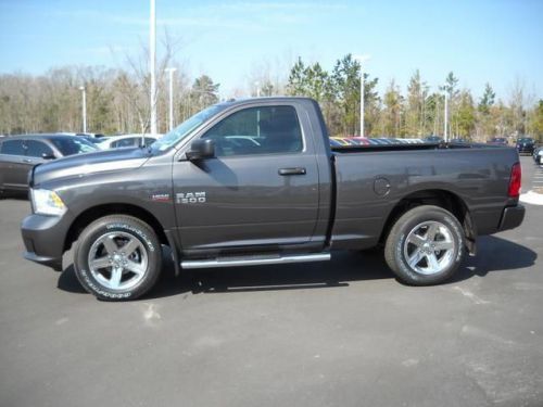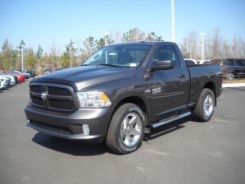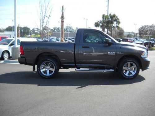 Express trim, Granite Crystal Met. Clear Coat exterior. Alloy Wheels, Bed Liner, Overhead Airbag, iPod/MP3 Input, 4x4, PARKVIEW REAR BACK-UP CAMERA, ANTI-SPIN DIFFERENTIAL REAR AXLE, Tow Hitch. EPA 21 MPG Hwy/15 MPG City! CLICK NOW!KEY FEATURES INCLUDE4x4, iPod/MP3 Input, Trailer Hitch, Aluminum Wheels MP3 Player, Electronic Stability Control, Bed Liner, Brake Assist, 4-Wheel ABS. OPTION PACKAGESPOWER & REMOTE ENTRY GROUP Premium Vinyl Door Trim with Map Pocket, Power Windows with Front One-Touch Down, Remote Keyless Entry with All-Secure, Exterior Mirrors with Heating Element, Power Locks, Black Exterior Mirrors, Power Heated Fold-Away Mirrors, PARKVIEW REAR BACK-UP CAMERA Rear View Auto Dim Mirror with Display, POPULAR EQUIPMENT GROUP Cloth 40/20/40 Bench Seat, SIRIUSXM Satellite Radio, For More Info, Call 877-800-2018, 1-Year SIRIUSXM Radio Service, ANTI-SPIN DIFFERENTIAL REAR AXLE, QUICK ORDER PACKAGE 25C RAM 1500 EXPRESS Engine: 5.7L V8 HEMI MDS VVT, Transmission: 6-Speed Automatic (65RFE), Fog Lamps, Body Color Grille, Body Color Rear Bumper with Step Pads, Carpet Floor Covering, Delete Class IV Receiver Hitch, Full Size Temporary Use Spare Tire, Body Color Front Fascia, Front Floor Mats, Locking Lug Nuts, REAR SLIDING WINDOW, ENGINE: 5.7L V8 HEMI MDS VVT Electronically Controlled Throttle, Hemi Badge, Dual Rear Exhaust with Bright Tips, Next Generation Engine Controller, Heavy Duty Engine Cooling, Heavy Duty Transmission Oil Cooler (STD), TRANSMISSION: 6-SPEED AUTOMATIC (65RFE) 3.55 Rear Axle Ratio. EXPERTS RAVEGreat Gas Mileage: 21 MPG Hwy. OUR OFFERINGSRick Hendrick Jeep Chrysler Dodge is the premier dealership for New and Used Jeep, Chrysler & Dodge vehicles in Charleston, South Carolina and specializing in Jeep, Chrysler & Dodge Sales Closing Fee is included in the advertised/sales price. Fuel economy calculations based on original manufacturer data for trim engine configuration. Please confirm the accuracy of the included equipment by calling us ... Be sure to utilize our great team of Internet Sales Managers whether you are browsing online or decide to come see our Charleston car dealership for yourself!