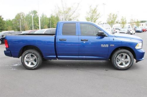 Express trim. iPod/MP3 Input, Hitch, Aluminum Wheels, Heated Mirrors, Head Airbag. Warranty 5 yrs/100k Miles - Drivetrain Warranty; SEE MORE! KEY FEATURES INCLUDE Heated Mirrors, iPod/MP3 Input, Trailer Hitch, Aluminum Wheels MP3 Player, Privacy Glass, Child Safety Locks, Electronic Stability Control, Brake Assist. BUY FROM AN AWARD WINNING DEALER Rick Hendrick Jeep Chrysler Dodge is the premier dealership for New and Used Jeep, Chrysler & Dodge vehicles in Charleston, South Carolina and specializing in Jeep, Chrysler & Dodge Sales, Finance, Service, and Parts. At Rick Hendrick Jeep Chrysler Dodge, our customers are being provided with high quality service and excellent after sales support. Closing Fee is included in the advertised/sales price. Please confirm the accuracy of the included equipment by calling us prior to purchase. - This 2014 RAM 1500 2WD Quad Cab 140.5 Express Truck features a 5.7L 8 CYLINDER 8cyl Gasoline engine. It is equipped with a 8 Speed Automatic transmission. The vehicle is Blue Streak Pearlcoat with a Other interior. It is offered with a full factory warranty. - Air Conditioning, Cruise Control, Tinted Windows, Power Steering, Power Windows, Power Door Locks, Passenger Airbag, Security System, ABS Brakes, Dynamic Stability, Intermittent Wipers, AM/FM,, Heated Mirrors - Be sure to utilize our great team of Internet Sales Managers whether you are browsing online or decide to come see our Charleston car dealership for yourself!