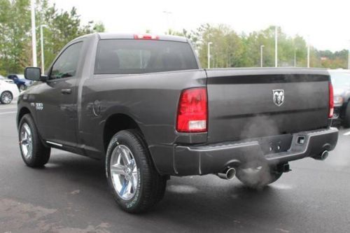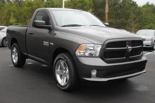 Express trim. iPod/MP3 Input, Tow Hitch, Bed Liner, Overhead Airbag, Alloy Wheels. FUEL EFFICIENT 22 MPG Hwy/15 MPG City! Warranty 5 yrs/100k Miles - Drivetrain Warranty; CLICK NOW! KEY FEATURES INCLUDE iPod/MP3 Input, Trailer Hitch, Aluminum Wheels. MP3 Player, Electronic Stability Control, Bed Liner, Brake Assist, 4-Wheel ABS. VEHICLE REVIEWS Great Gas Mileage: 22 MPG Hwy. WHY BUY FROM US Rick Hendrick Jeep Chrysler Dodge is the premier dealership for New and Used Jeep, Chrysler & Dodge vehicles in Charleston, South Carolina and specializing in Jeep, Chrysler & Dodge Sales, Finance, Service, and Parts. At Rick Hendrick Jeep Chrysler Dodge, our customers are being provided with high quality service and excellent after sales support. Closing Fee is included in the advertised/sales price. Fuel economy calculations based on original manufacturer data for trim engine configuration. Please confirm the accuracy of the included equipment by calling us prior to purchase. - This 2014 Ram 1500 2WD Reg Cab 120.5 Express Truck features a 5.7L 8 CYLINDER 8cyl Gasoline engine. It is equipped with a 8 Speed Automatic transmission. The vehicle is GRAN CRYS MET with a Other interior. It is offered with a full factory warranty. - Air Conditioning, Cruise Control, Power Steering, Passenger Airbag, Security System, ABS Brakes, Dynamic Stability, Intermittent Wipers, AM/FM, iPod/MP3 Input, Trailer Hitch, MP3 Player, Bed Liner, Brake Assist, Vinyl Seats, Tire Pressure Monitoring System, 4-Wheel Disc Brakes, Side Head Air Bag, Driver Air Bag, Auto-Off Headlights, Adjustable Steering Wheel, Tires - Rear All-Season, Tires - Front All-Season, Split Bench Seat, Full Size Spare Tire - Be sure to utilize our great team of Internet Sales Managers whether you are browsing online or decide to come see our Charleston car dealership for yourself!