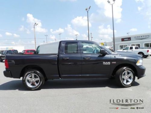 This 2014 Ram 1500 Express is offered to you for sale by Ilderton Dodge. This Ram includes: Equipped with Black / Diesel Gray Interior Cloth Interior, Remote Entry, Cruise Control, SiriusXM Satellite Radio w/ 1-Yr Radio, MP3 Audio, Electric Shift-On-The-Fly Transfer Case, Trailer Tow with 4-Pin Connector Wiring, 20-Inch x 9.0-Inch Aluminum ChromeClad Wheels, 8-Speed TorqueFlite Auto Trans, and a 5.7-Liter V8 HEMI MDS VVT Engine! More information about the 2014 Ram 1500: The Ram 1500 already offered truck buyers a whole host of reasons to consider it, with power Hemi V8 availability, coilover rear suspension and innovative storage solutions, but with some very effective upgrades in key areas -- namely increased chassis strength, improved base engine power and efficiency and more intuitive interior ergonomics -- the Ram raises the bar for full-size trucks. Interesting features of this model are Multiple model configurations to suit all needs, ample available V8 power with improved V6, increased fuel efficiency, user-friendly cabins, and Ram-Box bed-side storage Family owned and operated for 87 years. Visit our store today, you will see that we deliver the best dealership experience you have ever had. New vehicle prices include Factory incentives and rebates for SEBC (VA, NC, SC, GA, FL), RAM Trucks and Chrysler 200s (except convertibles) include $500 Chrysler Capital Financing. On approved credit