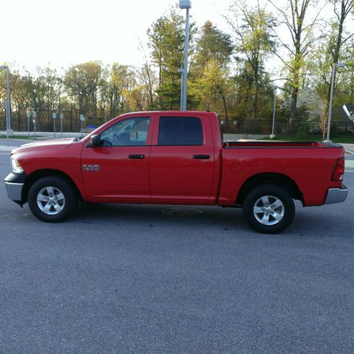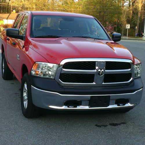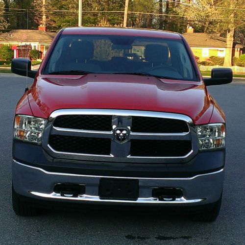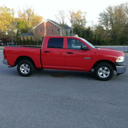YOU ARE BIDDING ON A GORGEOUS, PRACTICALLY NEW PICKUP TRUCK. INCREDIBLY BEEFY AND POWERFUL LOOKING. I BOUGHT IT IN FEBRUARY 2014 NEW FROM THE DEALER. IT HAS LESS THAN 500 MILES. NEVER BEEN USED FOR WORK. NEVER TOWED. NEVER PLOWED. NO PETS. NO CHILDREN. NO EATING AND DRINKING IN IT. DRIVEN EXTREMELY CAREFULLY. NO ACCIDENTS. NO WEAR AND TEAR. NO SCRATCHES. NO DENTS. LOOKS AS GOOD AS IT DID WHEN I DROVE IT OFF THE LOT. I HAVE ONLY FILLED THE GAS TANK ONCE. FOUR FULL DOOR CREW CAB. SPACIOUS LEG AND HEAD ROOM IN FRONT AND REAR. MOTOR TREND TRUCK OF THE YEAR FOR 2013 AND 2014. EYE CATCHING FLAME RED EXTERIOR. 4 WHEEL DRIVE. GAS SIPPING 3.6 LITER PENTASTAR V6 ENGINE. FLEX FUEL VEHICLE.8-SPEED TRANSMISSION ADDS TO FUEL EFFICIENCY. AIRBAGS. POWER LOCKS. POWER WINDOWS. POWER MIRRORS. REMOTE KEYFOB. CHROME APPEARANCE PACKAGE. CLOTH SEATS. VINYL FLOOR. SIRIUS XM SATELLITE RADIO.