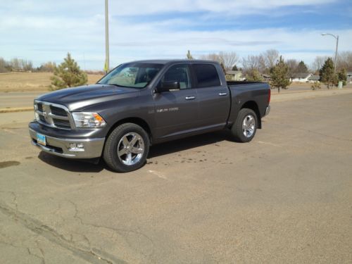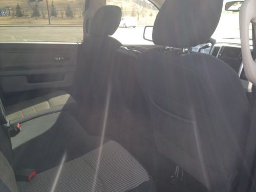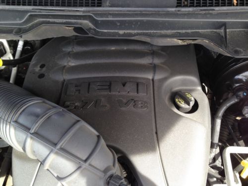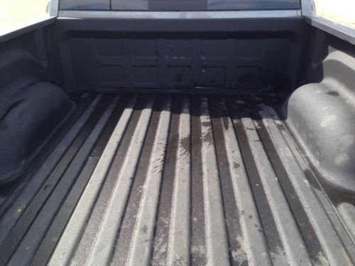 2011 Ram 1500 Crew Cab 4x4 Bog Horn Edition, 39,563 miles at time of listing, 20" chrome wheels with Wrangler HP tires, power sliding rear window, power driver's seat, CD, 40/20/40 front seat with under seat storage, split rear bench seat with under seat storage, sprayed Ram bedliner. Vehicle had sustained damage to the RH side. Front bumper was replaced with a brand new OEM takeoff, front passenger fender was replaced, hood, RH doors and RH box side were all refinished. It appeared that the vehicle had run up against a fence and scratched the RH side requiring the refinish of the entire RH side. Vehicle is nice and clean inside. No tears in seats and does not appear to have been smoked in. All glass if free of cracks and/or chips. Air bags did not deploy during the accident. Tires are probably around 50% yet. There are a few minor dings in the upper edge of the tailgate (one shown in the photo). Engine compartment is very clean and inside of box is in very good shape as well. |