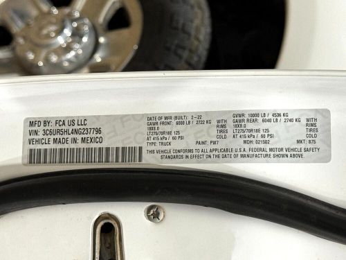 VIN (Vehicle Identification Number): 3C6UR5HL4NG237796