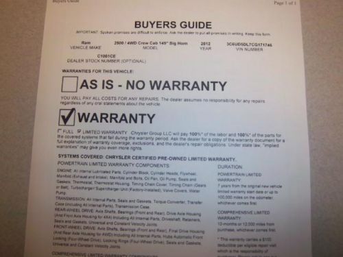 2012 ram 2500 slt bighorn crew cab pickup 4-door 6.7l cummings(US $42,500.00)