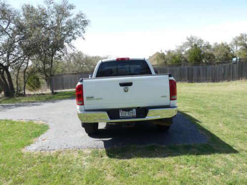 Truck has a few dings and scratches on the exterior as would be expected on a 2005 vehicle. Upholstery has a small tear about 1/2" long. The lumbar support is not working. Paint and chrome is in excellent condition other than what has been described previous. This truck runs and drives like the day I bought it. It has been maintained according to factory recommendations. Always garaged and pampered.This is a Texas truck with no rust that I am aware of.. Has many options such as the Cummins 5.9 Turbo Diesel, spray in bed liner by Linex, pillar mounted gauges to monitor transmission and exhaust temperature and turbo boost pressure, power seat, power windows,cruise control, hitch and both bumper and bed outlets for trailer plugs, towing package, kyeless entry and too many other options to list. I believe if you take the vin number and go to the Chysler website you can pull it up. 4
