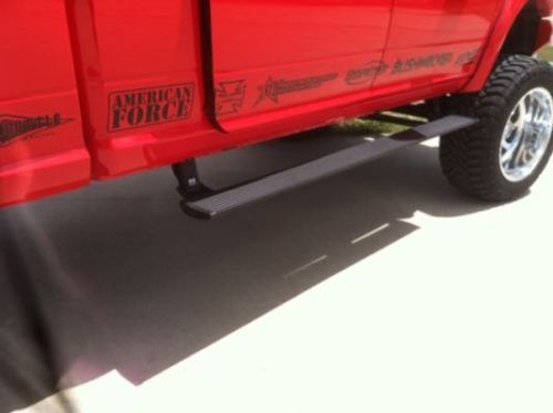 Custom Front Drive Shaft 24 inch American Force Nightmares 40 x15.50 x r24 Toyo MT tires AMP steps with LED light pack Recon Lights all around (headlights, rear lights, cargo lights, and overhead lights) Iron Cross front and rear bumpers painted to match Winch with Synthetic rope Rear 2 Stage Kelderman air suspension Air lift wireless pump with remote Under Cover bed cover painted to match and two storage bins Rear View mirror backup camera And only 4000 total miles on truck 2000 on lift and tires (Zero Rub from Tires) This Truck was built for Sema 2014 and is done right. Please email any Questions Thanks for Looking!! |
