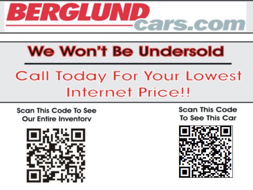 Thank you for shopping our inventory! Please contact us today toll free at 877-451-3046 At Berglund Chrysler Jeep Dodge, we offer you the lowest prices and best financing options to get you driving today. Our committed sales staff has many years of experience satisfying the wants and needs of our customers whether they are looking for a car, truck, or SUV. All Prices Reflect Factory Rebate. Vehicle prices do not include taxes, DMV fees, or $399 dealer processing fee.