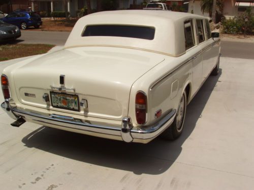 1974 Silver Shadow long wheel base Rolls-Royce limousine The photos do not do this car justice! It is beautiful ! As per the pre-sale inspection, almost perfect stretch. Can not detect where the stretch begins and ends. Lines are perfect, no waves, indents etc. Paint is described as factory paint, no visible difference in the paint. There are very few defects, a little pitting and chipping in discrete areas of the car, such as under the wheel. Also described as very little rust also not in visible areas. Interior is in perfect condition. Inspection found no imperfections in the interior at all. Contact seller for further details. |