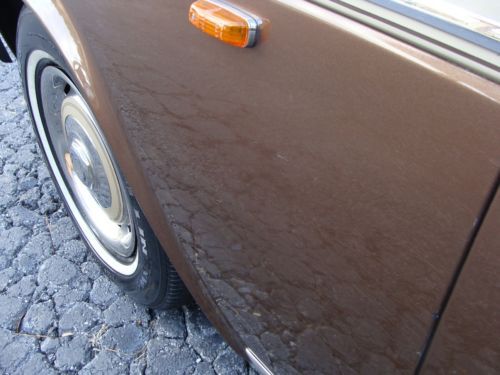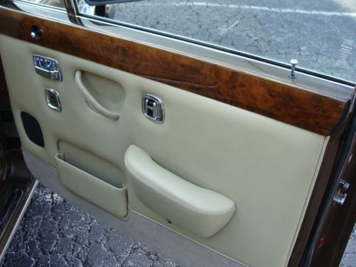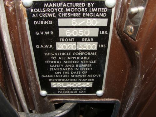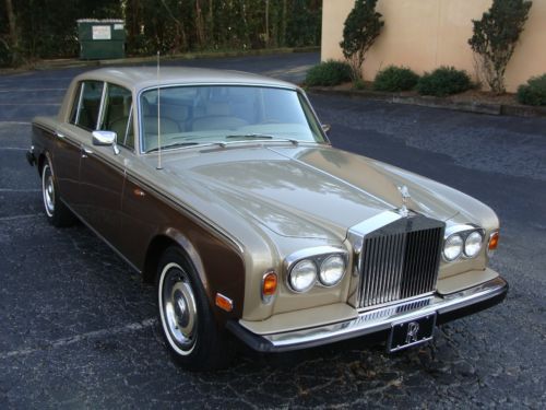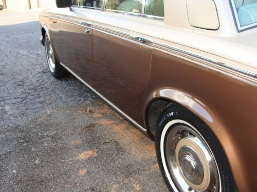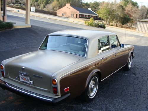 Thisi is a nice proper Rolls Rocye Siilver Shadow, a 1980 US model, as best as I can discern. It's finished in a two tone scheme, as I believe most all these cars were, with the top sections in what appears to be a "champagne" or "smoke silver" finish. The bottoms/sides are in a dark brown metallic, I believe it is called Walnut. It makes a really, really good appearance, inside and out. The interior is especially nice. The odometer shows approximately 17000 miles, but PLEASE NOTE: This car is being sold "mileage exempt" under Ga law (vehicles more than 10 years old). I have a fairly recent ticket from last year that shows a remove/repair/and re-install on the speedometer for a broken gear, so I need to make that clear. Frankly, many facets of the car do look like 17k miles, but I want to make sure that I give total disclousre on the miles. As with any 34 year old British car, there are good and bad features. I will do my best to give you the most accurate description: THE GOOD