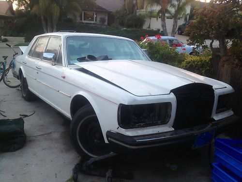 Up for auction is our 83 Rolls Royce Silver Spur PARTS CAR. 75,000 miles, LOW MILAGE. NO RESERVE It was a daily driver up until about a year ago; at that time we were closing our automotive repair shop and the car was parked in a storage lot. Someone threw a couple chunks of concrete over the fence, to be clever I guess, and one broke the back window, another dented and scratched the trunk lid pretty good. We decided it would be better to part out the car because it was worth a lot more in parts than selling as a whole and we needed to thin the herd and free up some space. After a year of parting out random things here and there (not very proactively) we no longer have a storage lot and trying to part out this car in front of our house isn't going so well. This is a great opportunity for someone with the time and space to dismantle the car and sell everything, the engine alone should go for at least $1,500, control arms also go for that amount from the research I've done, Transmission, another $1,500, that already more then what we are listing this for. Engine ran flawlessly when parked and nothing has been taken off the engine, so its still all there and complete. See below for list of parts we have sold from the vehicle, the majority of the car is there. Body is very very straight, original white paint but was kept clean and buffed. Interior is red leather, sun baked and normal wear and tear for a car of this age. Seats would need to be redone if going into a nicer car. Everything is functional, nothing was broken or not working when it was parked. Honestly it was a mistake to start taking this car apart, it was beautiful and mobbed in the rain, couldn't hydroplane this car if you tried, at least here in Santa Barbara. You could technically find the missing parts, if you are looking for a project, and restore this to its original beauty, never been in an accident as far as I know and like I said super straight. But it would be much much easier to just turn it into loads of profit parting it out piece by piece.