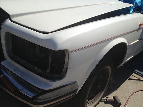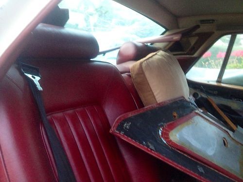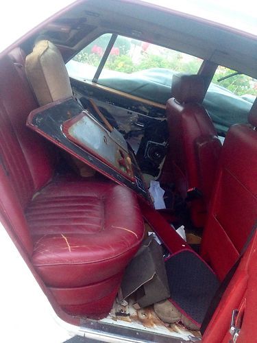 SOLD AS IS - FOR PARTS ONLY - Car has broken back window, dent in right rear door, and trunk lid, missing steering rack, fuel pump, grille, flying lady figure, hub caps, headlights, tail lights, turn signals, interior carpet, misc body parts such as 2 door handles, glove box door and latch, speedometer, misc panels from dash area, one window regulator, window switch, ignition switch and key, catalytic converter. Message me for particular parts, there might be a few more missing, but no major components, and nothing from the engine. Small rust area along back window seal, paint is original white, no major chips or scratches, has been buffed quite a few times, body was kept in great condition, was a daily driver. Interior is red leather, which has sun damage and is cracking. Wood trim on doors and dash have the top layer cracking/peeling. Body is very straight. Ran when parked about a year ago, no engine parts are missing. mileage 75,000 miles. Again AS IS condition.