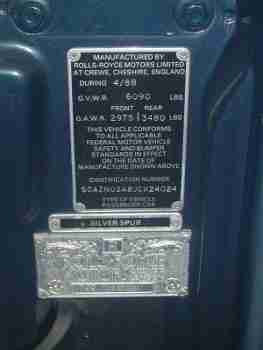 1988 Rolls Royce Silver Spur. The triple dark blue, beautiful Silver Spur, simply says "I've Arrived". Mechanically perfect with only a few cosmetic flaws. This is a one owner car, his dream car until he unfortunately recently passed away. He loved this car, always garaged & winter stored it. All of the power features work perfectly. The new tires, plush, thick carpet, supportive leather seats & a high-end aftermarket sound system will give you a ride experienced by a very select few. Looking over the long & graceful hood provides a sense of security & pride to the driver & passenger. There are 2 very small rust spots above the right headlights & the hood repaint is slightly mismatched from the body. NADA lists this car at up to $51,100.00, but we are offering it at $24,500.00. SCAZN02A8JCX24024.