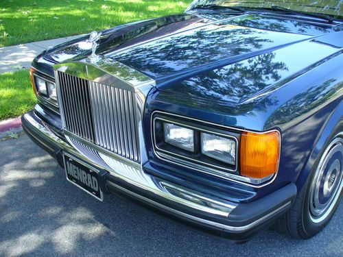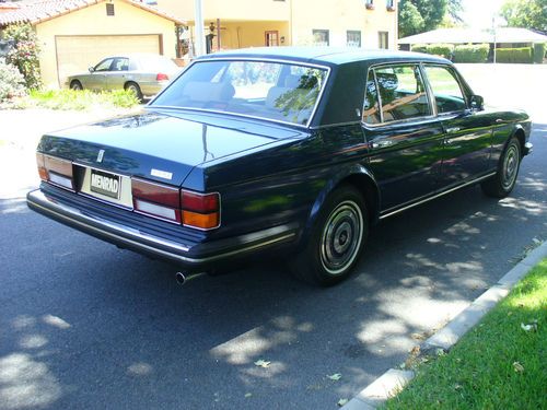 Gorgeous 1988 Rolls Royce Silver Spur. Finished in Deep Ocean Blue Metallic with Tan Leather Interior and Dark Blue Piping with Dark Blue Carpets. Dark Blue Top. 62,000 Original Miles. 100% Rust Free Rolls. Great Condition Inside and Out. Runs and Drives Excellent. A/C is Cold, Power Windows, Power Seats and Power Mirrors all Work Properly. Interior Wood is Amazing and Leather Dash has No Lifting. Great addition for any Collector or Enthusiast. Tires have 80% Tread Life Remaining. Great BUY it NOW or MAKE an OFFER. We are a Licensed and Bonded Dealer in Southern California and all California Residents will pay State Sales Tax, License Fees and a $125.00 Documentation and Smog Fee.We Welcome all European and Canadian Buyers and ship Worldwide. We can assist with Low Cost Shipping for any Out of State Buyers. Thanks for Looking.