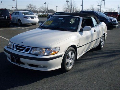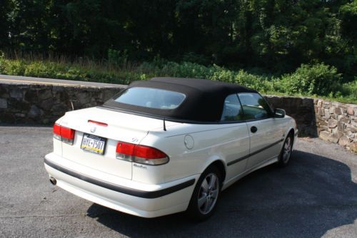 I am selling my Saab 9-3 SE convertible. I bought this car last year from Sutliff Cadillac in Mechanicsburg PA and was told it was traded by the owner on a new Saab convertible prior to Saab going bankrupt. I bought it as my daily driver back and forth from work (200 mile / day highway commute) because of gas prices and not wanting to run up the miles on my truck. When I bought it there were about 55K miles on it. So the last 30K is 100% highway. I am selling it now because I have a daughter and it is very hard to get here in and out of a car seat for daycare and I am changing to a 4 door. THIS CAR HAS AN ABSOLUTLY CLEAN HISTORY WITH NO DAMAGE OF ANY KIND ON THE AUTO CHECK OR CAR FAX The condition is excellent for a 2002 with the only issues being stated in the condition description. I runs perfect and recently passed PA inspection at which time the rear brake pads and rotors were replaced and a new exhaust resonator was installed. The top shows no wear at all since the vehicle has always been garage kept and the automatic mechanism works perfectly . The seats are also in great shape with no cracks or damage which is typically seen on the drivers side. If you would like to come see it please email me and we can set up a time for a test drive. Service work done in the last year: new spark plugs, rear brakes, exhaust resonator, & new battery in October I previously listed this car and the AC compressor was noted as needing replaced. I completed the service this week. So it now has a new AC compressor, recharged system and a new serpentine belt so it is completely ready to go.
