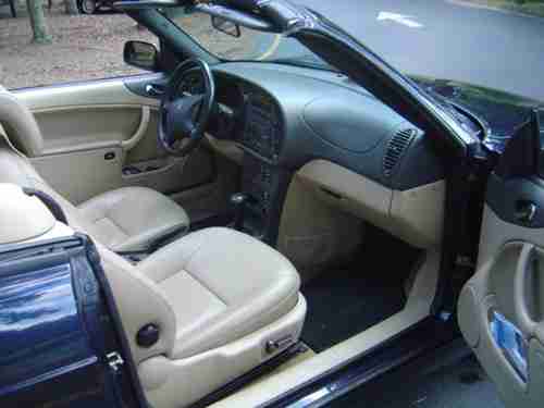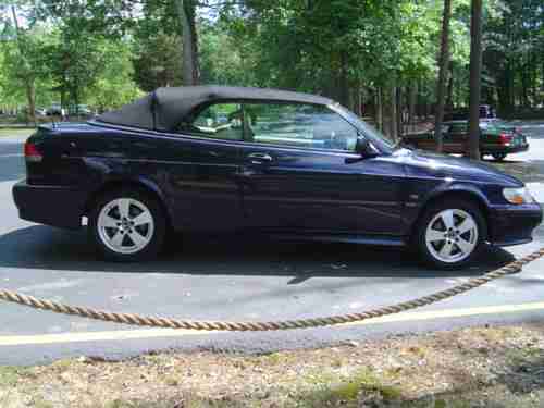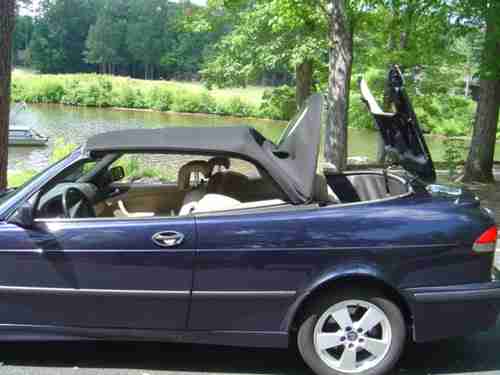 A 2003 SAAB 93 SE convertible with only 63,000 miles. It all original and top and interior are excellent with brand new tires, battery, alternator and front brakes. Pretty dark metallic blue with saddle leather interior. The 93 SE has the 2.0 liter DOHC turbo engine with 4 speed automatic overdrive transmission and averages in the upper 20's miles per gallon overall. But with 210 horsepower and only 3100 pounds this is a true sports car that seats four people and has a trunk. This is a luxury car as well with one button top down and windows down, all power features, cruise control, auto door locks, automatic climate control air conditioning and heat, am-fm-cd with 6 speaker sounds system, power seats and a lot more. Just in time for fun in the sun! Call Bill Coiner 804-539-3142.