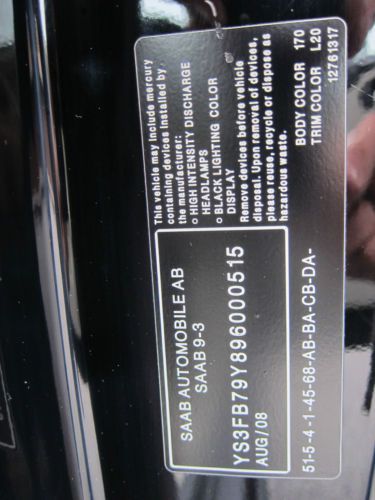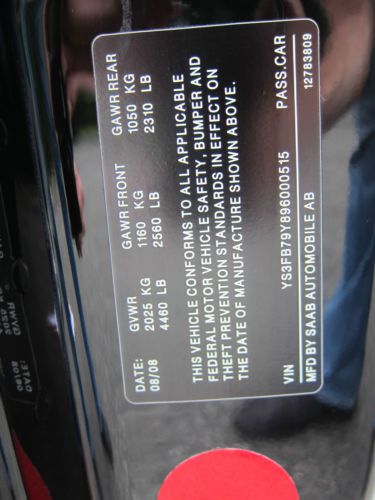 2009 SAAB 9 3 CONVERTIBLE WITH LOW MILEAGE AT A GREAT PRICE! Garage kept, non smoker! Equipped: 2.0 turbo 4-cylinder fuel efficient engine, auto trans, recent tires (Continental Contact Extreme 235/45/ZR17) Aero 17" alloy wheels, Bluetooth, aux port, spoiler, OnStar, dual climate control, leather interior, power drivers seat, heated front seats, power top, rear defrost, headlamp washers, led headlamps , 2-remotes, CD etc. Production date: 08/08. Vehicle runs and drives excellent with no codes/warning lights lit on the dashboard. Exterior: Front bumper has scrapes along the bottom, rear bumper has some scratches and a few scratches and dings from everyday use. New Jersey standard title in hand with no liens. Current NJ inspection. Contact Allen 201-248-3818.