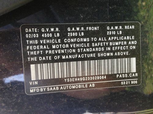 2003 Saab 9-5 Aero Sedan 4-door 2.3l Mechanics Special on 2040-cars