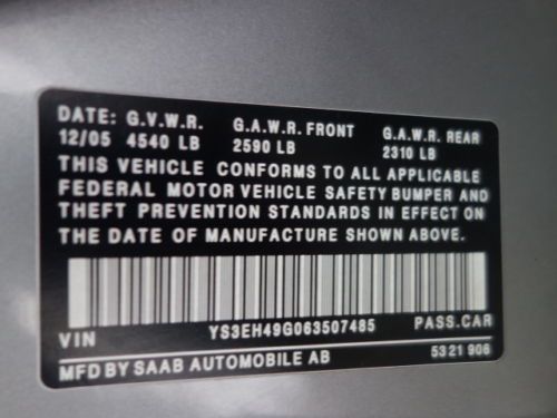 2006 saab 9-5 parchment silver metallic, automatic, fully loaded, aero package(US $6,500.00)