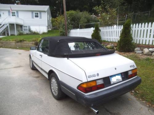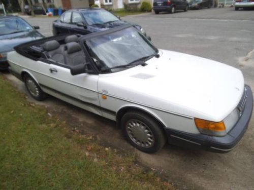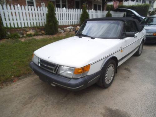 I am selling my 1991 SAAB 900s white convertible. I bought the car for the summer and don't have a place to keep it for the winter months. The car starts but needs work (rough idle etc). Replaced the fuel filter and spark plugs in the last 3 months. Body is in good condition except for a dent on the passenger side (as seen in pictures) as well as some filler above the driver side wheel well. Car has 212K miles Interior is in good condition, automatic top works well. Sold AS-IS. Will need a trailer to get it home.
