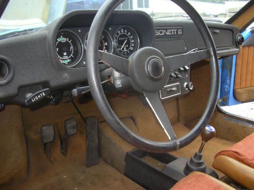 1974 Sonett with strong engine. Fiberglass body in good condition with minor scratches. Some rust repair in underbody, but structurally good. Some surface rust in rockers but also structurally sound. Body condition reflects a daily driver not show car. Clutch does have an intermittent issue with full engagement. Recent radiator connector failure produces coolant leak. Rubber around windows needs to be replaced. Wipers intermittently do no not work and then do work.