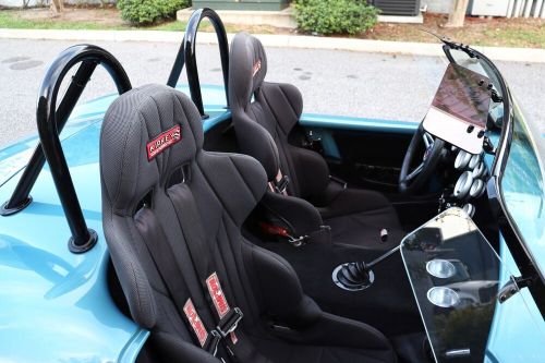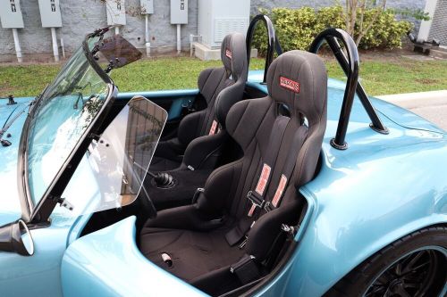 Inside the passenger compartment, occupants are treated to Carroll Shelby Scat Rally Series 1000 seats, five-point Camlock belts, three-spoke aluminum woodgrain steering wheel with tilt column, a full complement of gauges and full carpeting. An Old Air Products air conditioning system blows ice-cold breezes, and a powerful audio system with external amp and subwoofer ensure a sweet background track to the V8's wild bellow.