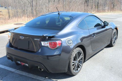Up for sale is a dark gray metallic 2013 Subaru BRZ Limited - 6 speed manual. The Limited is fully loaded from the factory and includes the options of a chrome fuel door cover, wheel locks, rear bumper applique, auto-dim / Homelink mirror, and chrome fender trim. I had the windows tinted at 35% and a 3M clear bra installed on the hood, fenders, and mirrors. I also had the all-season tires replaced with summer tires. There are no other modifications or alterations to the vehicle. The vehicle runs and drives like new. No accidents. Non-smoker. Always garaged.