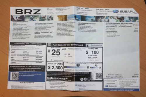 2013 subaru brz limited coupe new car trade on sti new car warranty(US $22,999.00)
