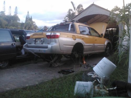 IF YOU OWN A CRASHED WRX OR EE20 DIESEL BASED POWER-TRAIN FOR DIRT CHEAP ON MAUI ,WE SHOULD TALK. WINNING BIDDER MUST PAYPAL $500 NON REFUNDABLE DEPOSIT ON THE SALE AND THE REMAINDER PAID IN FULL WITHIN 5 DAYS (ON THE SIXTH DAY I RELIST THE CAR AND KEEP THE $500) WINNING BIDDER MUST TAKE POSSESSION OF THE SUBARU BAJA NO LATER THAN 5 DAYS AFTER THE CLOSE OF AUCTION. IF YOU BID, YOU ARE COMMITTING TO PERSONALLY BEING IN MAUI HAWAII TO ACCEPT THE TITLE AND SIGN THE PAPERS. PERSONALLY AS IN YOU THE WINNING BIDDER AND ONLY YOU THE WINNING BIDDER, NO THIRD PARTIES NO BULL. If you saw my local LISTING and wish to pay with PayPal this is your lucky day,so BID. If you choose not to do business with eBay then I really don't want your PayPal. I RESERVE THE RIGHT TO END THE AUCTION EARLY IF CASH SHOWS UP IN MAKAWAO. Now that I got your attention, just assume that everything is broken and this is a perfect foundation on which to build a truly amazing truck...car...Betty or Bra Dah this is always turning heads. No it's not a brat its a baja and if it had some nutz....260lbft at 1500rpm.....you get the picture... Registered and Safety sticker'd LOCAL PICKUP ONLY LOCAL=STANDING ON MAUI |