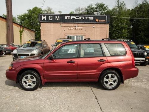 ***WWW.MGMIMPORTS.COM*** 2003 Subaru Forester XS, COMPLETELY INSPECTED AND SERVICED, ALL WHEEL DRIVE, LIKE NEW IN/OUT, CLEAN TITLE, PERFECT CARFAX, AUTOMATIC, 2.5L 4-CYL ENGINE, 21/26 MPG, ALL POWER OPTIONS, SUNROOF, HEATED SEATS, ABS, ALLOY WHEELS, TILT WHEEL, CRUISE CONTROL, CD/TAPE PLAYER, 6 DISC CD CHANGER IN DASH, REAR WIPER, REAR DEFROST, LUGGAGE RACK, FOG LIGHTS, FRONT/SIDE AIRBAGS, KEYLESS ENTRY, ALARM, LOTS OF CARGO SPACE, WILL NOT LAST WITH THIS CONDITION -- MOST OF OUR VEHICLES ARE HIGH QUALITY, HAND PICKED, ONE OWNER IN A LIKE NEW CONDITION WITH A CLEAN CAR FAX. ALL ARE FULLY INSPECTED, SERVICED AND RECONDITIONED, THOSE THAT DO NOT MEET OUR MECHANICAL CRITERIA ARE NOT OFFERED FOR SALE. MOST OF OUR VEHICLES ARE COVERED WITH THE MANUFACTURER WARRANTY OR A 3 MONTHS/4500 MILE WARRANTY. FINANCING IS AVAILABLE AND TRADES ARE ALWAYS WELCOMED. FOR SIMILAR GREAT DEALS PLEASE VISIT OUR WEBSITE http://www.mgmimports.com Thanks so much for checking out MGM Imports in your car hunt! We're proud to sell the very best used car stock in the Cincinnati area. Our welcoming, very low-hassle attitude continues to be the number one appeal of our company. We carry all luxury used cars, imports, and high end cars on our lot. No matter where in Cincinnati you are MGM Imports has the best used car inventory for you.
