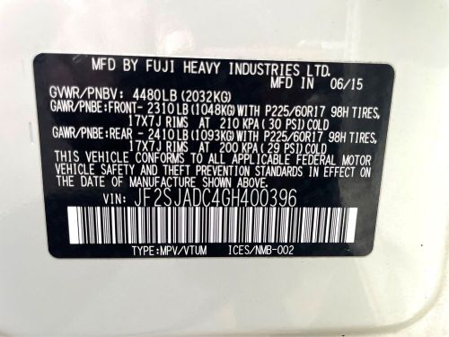VIN (Vehicle Identification Number): JF2SJADC4GH400396