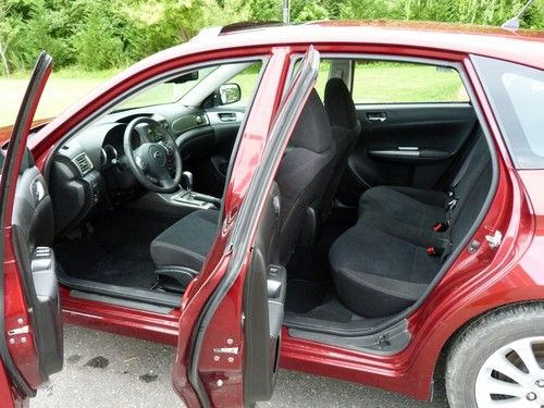 UP FOR SALE IS AN IMMACULATE 2011 SUBARU IMPREZA AWD,AUTOMATIC,WITH ONLY 23700miles BURGUNDY PEARL EXTERIOR AND BLACK CLOTH INTERIOR IN OUTSTANDING CONDITION.THE CAR IS EQUIPPED WITH 4 CYL.2.5 ENGINE WITH 160HP WITH PLENTY OF POWER AND VERY GOOD GAS MILEAGE AT THE SAME TIME.THE SUBARU AWD SYSTEM IS ONE OF THE MOST AWARDED IN THE WORLD.TRANSMISSION SHIFTS SMOOTHLY,A/C BLOWS COLD,ENGINE PULLS STRONG.INSIDE AND OUT THAT CAR IS IN VERY GOOD CONDITION WHAT SHOULD BE EXPECTED FROM A CAR WITH THAT AGE AND MILEAGE.IT IS EQUIPPED WITH ALL POWER OPTIONS-LOCKS,WINDOWS,MIRRORS,SUNROOF-glass,tilting/sliding/power STEERING.FACTORY SECURITY SYSTEM WITH REMOTE KEYLESS ENTRY.COLD WEATHER PACKAGE WITH HEATED FRONT SEATS AND WINDSHIELD WIPERS.DUAL FOG LIGHTS.THE CAR COMES FROM ONE PREVIOUS OWNER AND HAS NEVER BEEN SMOKED IN.6 DISC CD IN-DASH CHANGER WITH MP3 PLAYER AND BLUETOOTH TECHNOLOGY PACKAGE WITH MULTI CONTROLS ON THE LEATHER WRAPPED STEERING WHEEL.AS A DEALER WE BOUGHT THAT VEHICLE FROM AN INSURANCE COMPANY WITH LIGHT FRONT HIT AND IT WILL COME TO YOU WITH NC REBUILT TITLE.THE CAR CAME TO US IN LOT RUN AND DRIVE CONDITION.THE INVOLVED AND REPLACED PARTS WERE HOOD,LEFT FENDER,LEFT HEADLIGHT.THE FRONT BUMPER REMAINS THE SAME.NO AIRBAGS EVER DEPLOYED.