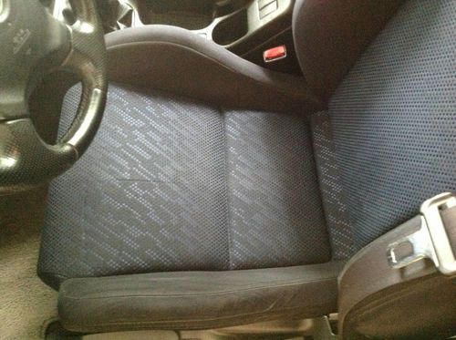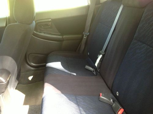 The interior of this car is nearly flawless. I shopped around for months before settling on the car, it was in great mechanical shape, but what sold me, though hard to admit, was the interior. The seats are practically like new, with no holes, tears, or even deformed foam on the drivers seat. No stains or sun damage anywhere in the car, and no burns because clearly it was never smoked in. Even the headliner is flawless, showing no signs of drooping or separation from the seams. There is a small scratch on the glovebox and a slight puncture on the passenger door both from my dachsunds nails. He rides in the other Subie now you can see it in the background of one of my pics, my wifes 2001 Legacy GT Wagon. So we are Subaru lovers you see!