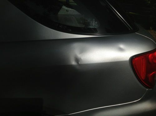 Platinum Silver Metallic in color. A couple minor dents as you would expect to find on a 11-12 year old car. I have captured all the noticeable ones in the pictures, the main blemish being on the driver rear quarter. I had this quoted with a paintless dent repair service for $200. It never really bothered me so I was waiting to get it done. I will factor this into the price. New windshield wiper blades and fog light bulbs. The paint is still smooth and shines like new when clean. A previous owner must have done some light towing as there are some marks on the rear bumper that could be repaired. Overall the car looks great, with only minor issues. Wheels have no curb rash. Tires have abt 25% tread should last another 5-10k.