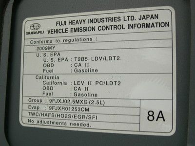 Engine:2.5L 2458CC H4 GAS SOHC Naturally Aspirated