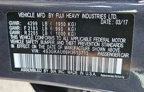 VIN (Vehicle Identification Number): 4S3GKAU60H3613713