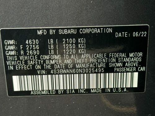 VIN (Vehicle Identification Number): 4S3BWAN60N3025495