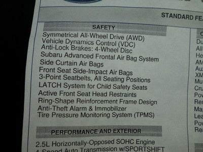 Engine:2.5L 2458CC H4 GAS SOHC Naturally Aspirated