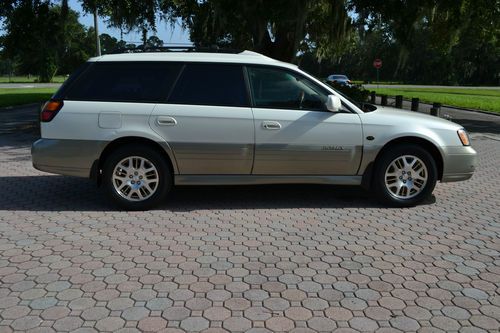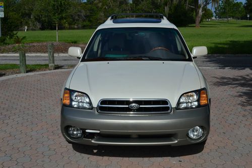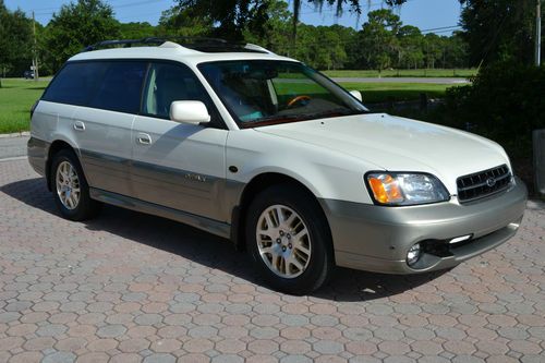 2001 Subaru Outback 3.0 LL Bean AWD White Frost Pearl Over Two Tone Tan Leather With 84687 Miles, 1 Owner Florida Car Garage Kept NonSmoker, 100% Clean CarFax, Dual Sunroof Power Seat, Cold A/C, Heated Seats, Newer Michelin Tires, All Books And Manuals, 1 Key And Remote. This Outback Go's Down The Road Great, No Road Noise.